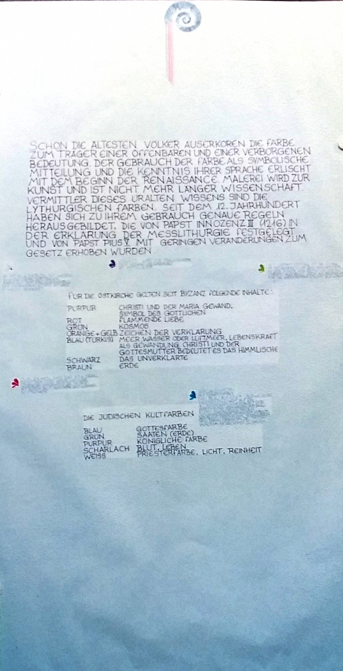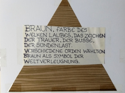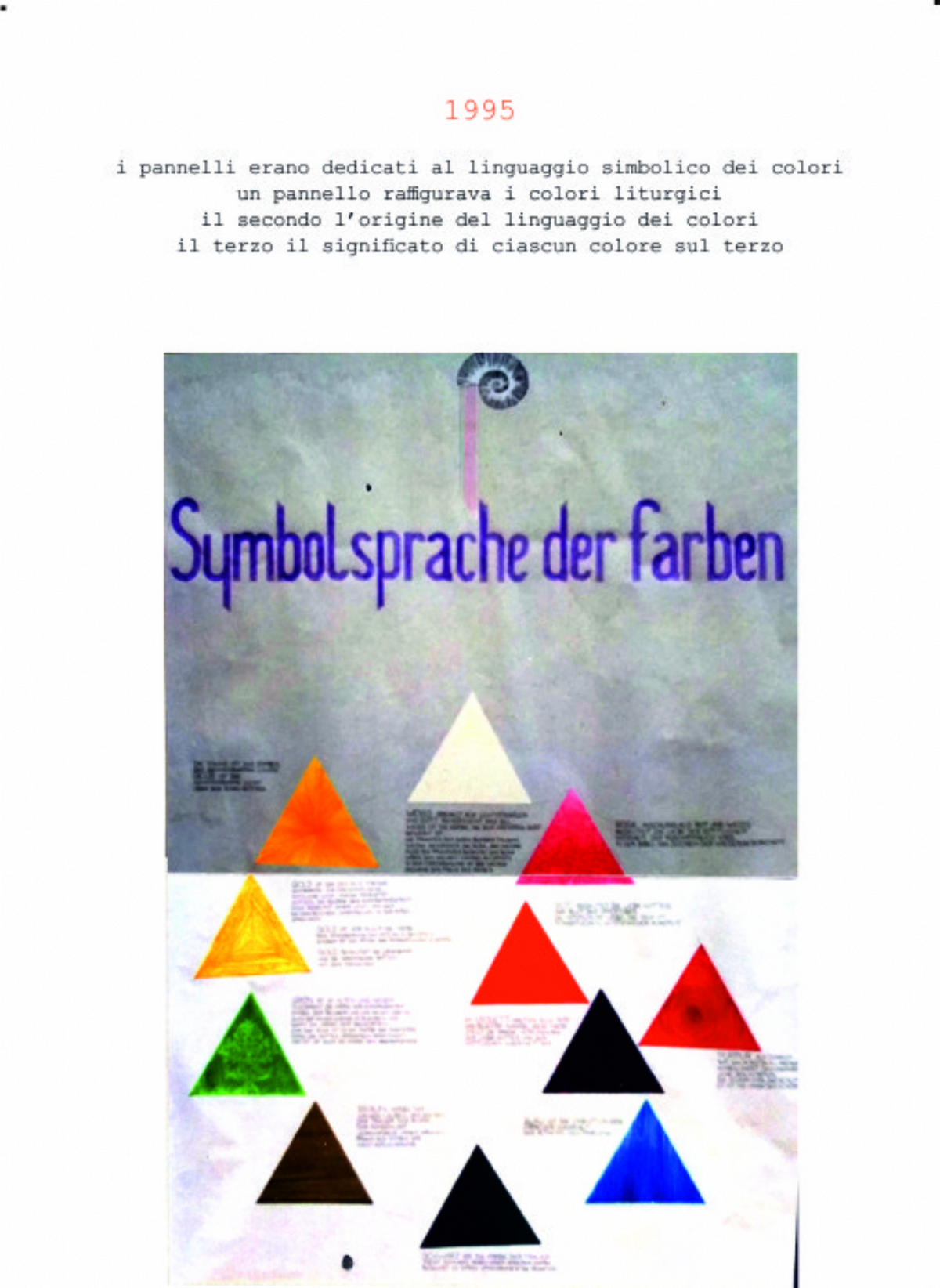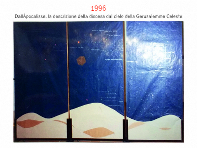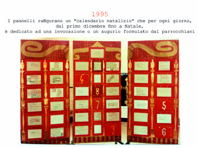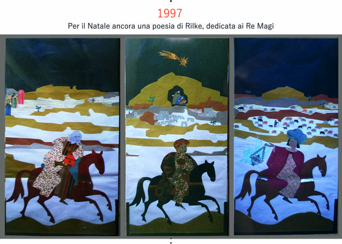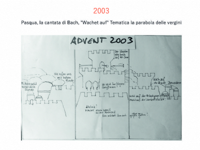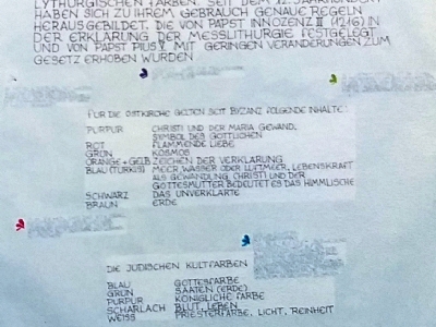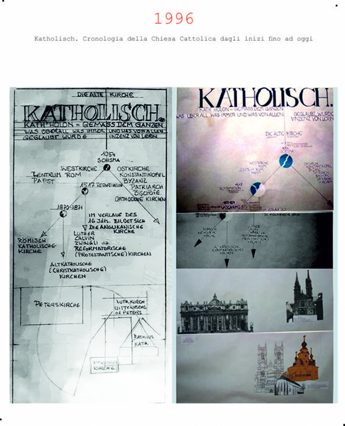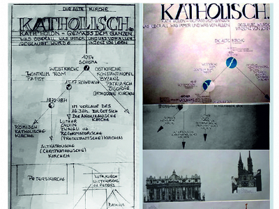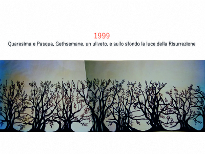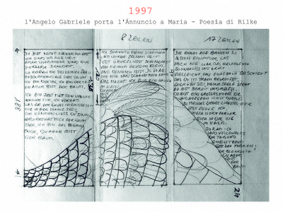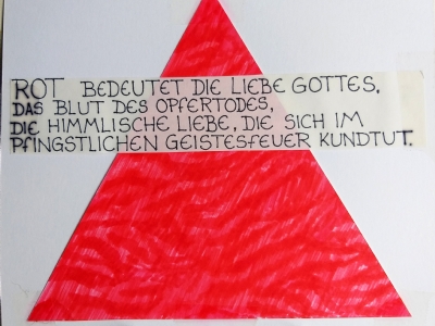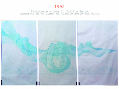 Accompagnai un gruppo di amici del nostro parroco di Basilea attraverso la Sicilia, e, al ritorno, sul traghetto che porta da Messina a San Giovanni, Fritz-René Müller mi chiese se volevo occuparmi dei tre grandi pannelli che erano posizionati all'ingresso della Predigerkirche. Originariamente erano destinati ad accogliere gli annunci, ma spesso erano abbandonati. Mi promise di darmi una mano, di indicarmi la tematica. Dopo un poco di tentennamenti mi lanciai in questa impresa,e per diversi anni, fino al momento quando Fritz-René Müller diventò vescovo, assolvevo questo compito con entusiasmo.
