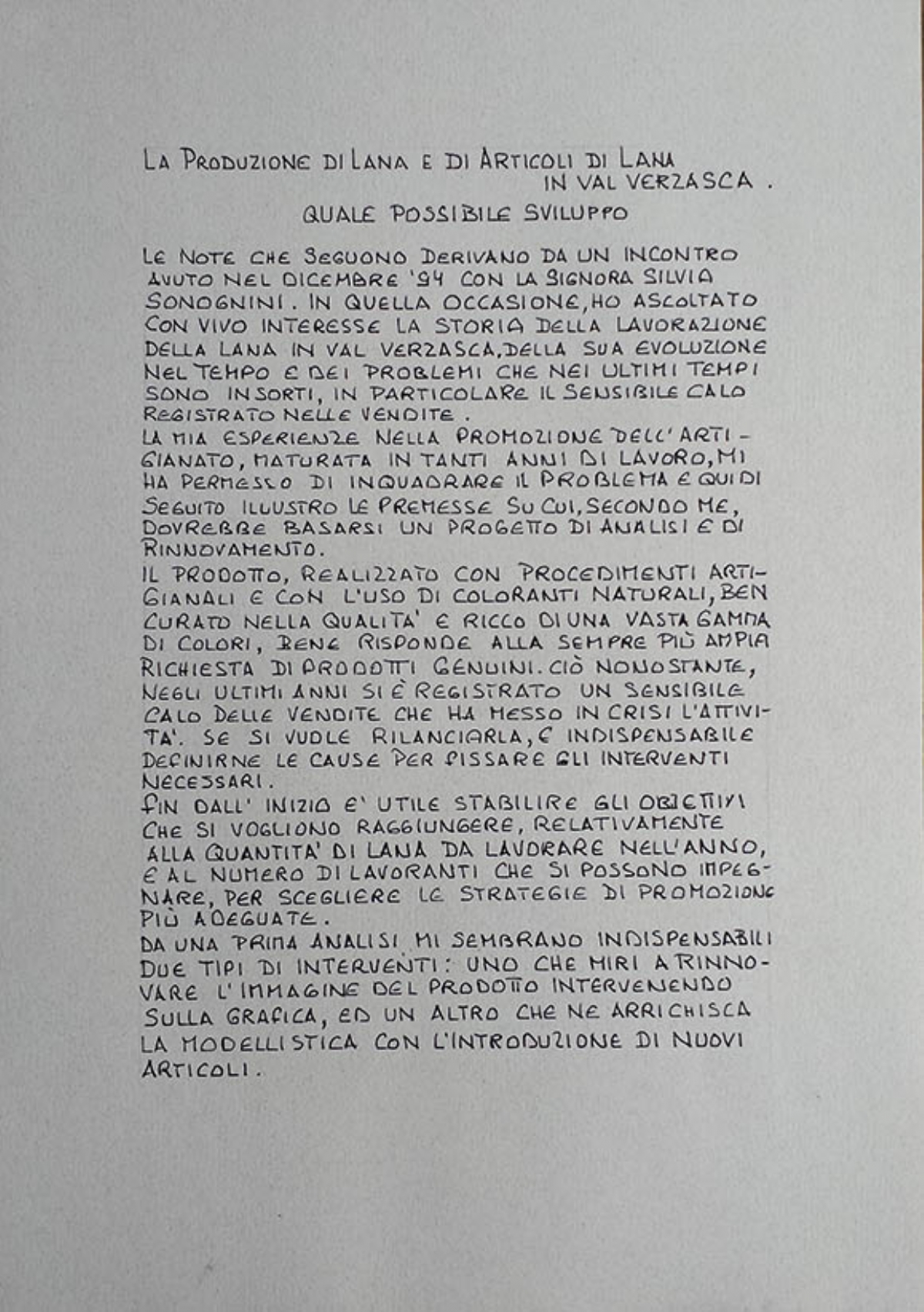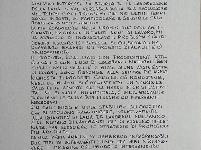 Il prodotto, realizzato con procedimenti artigianali e con l’uso di coloranti naturali, ben curato nella qualità e ricco di una vasta gamma di colori, bene risponde alla sempre più ampia richiesta di prodotti genuini. Cio nonostante, negli ultimi anni si è registrato un sensibile calo delle vendite che ha messo in crisi l’attività. Se si vuole rilanciarla, è indispensabile definirne le cause per fissare gli interventi necessari.