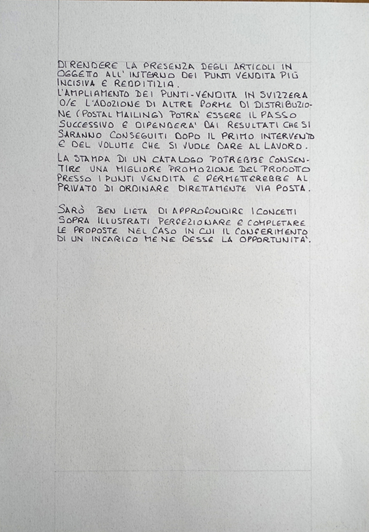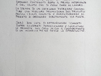 Da una prima analisi mi sembrano indispensabili due tipi di interventi : uno che miri a rinnovare l’immagine del prodotto intervenendo sulla grafica, e un altro che ne arricchisca la modellistica con l’introduzione di nuovi articoli.