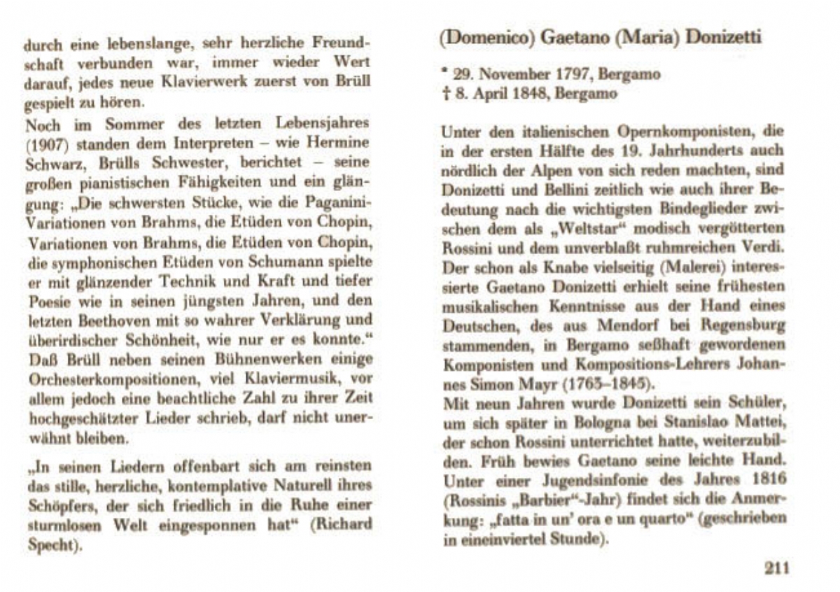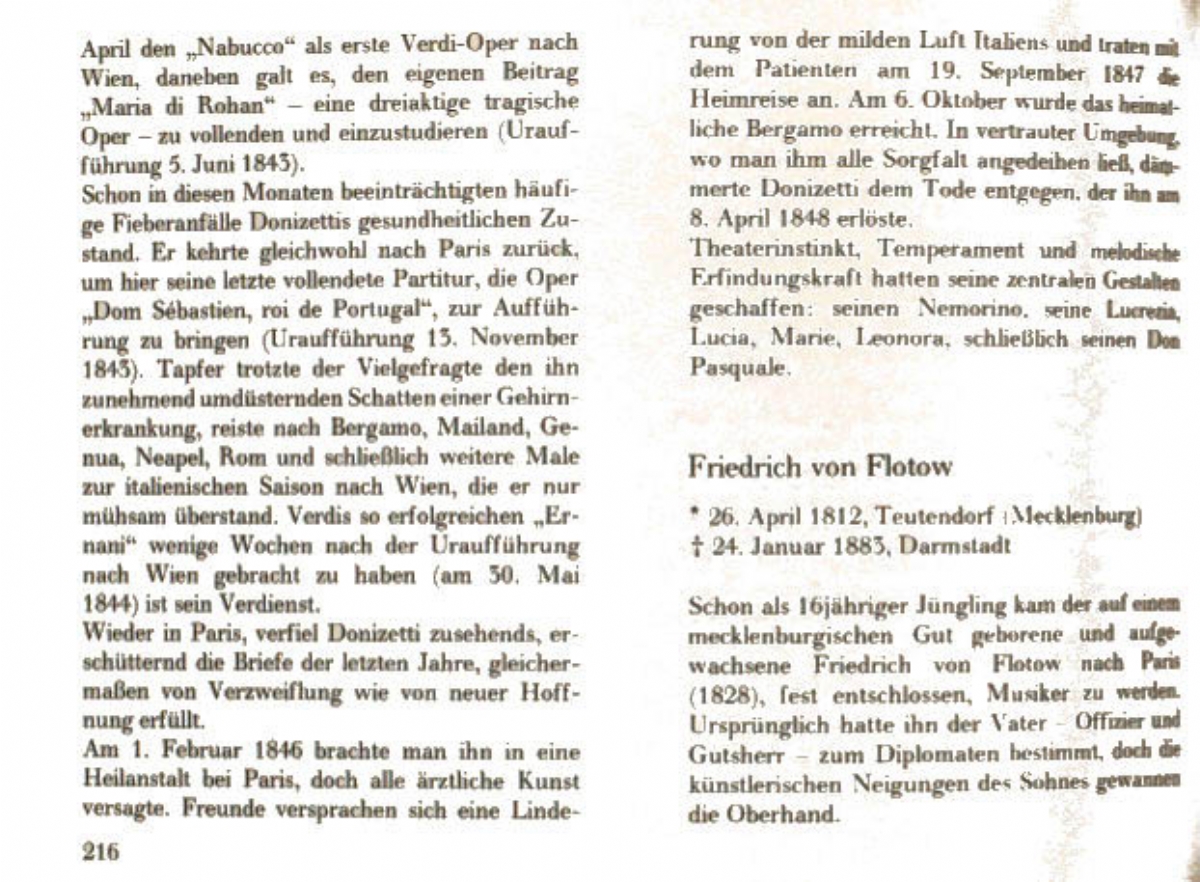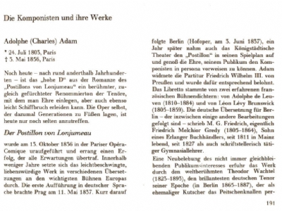 A. Adam, F.Auber, L.v.Beethoven, V.Bellini, G.Bizet, F.Boieldieu, M.Bruch, I.Brüll, G.Donizetti, F.v.Flotow, Chr.W.Gluck, Ch.Gounod, J.F. Halévi, F.Hérold, H.Hofmann, C.Kreutzer, A.Lortzing, H.Marschner, G.Meyerbeer, W.A.Mozart, V.E.Nessler, O.Nicolai, G.Rossini, A.Rubinstein, W.Taubert, A.Thomas, G.Verdi, R.Wagner, C.M.v.Weber