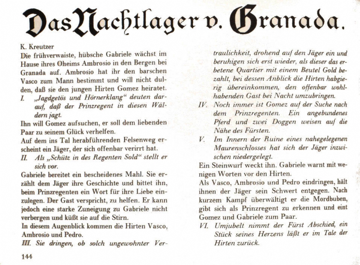 Robert der Teufel, Die Entführung aus dem Serail, Martha, Das Nachtlager v.Granada, Der Waffenschmied, Der Feensee, Die Meistersinger v. Nürnberg, Der Rattenfänger v. Hameln, Figaros Hochzeit