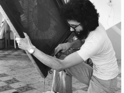 La preparazione dei colori era un capitolo importante della nostra attività e richiedeva specifiche conoscenze per le quali ci affidammo al tecnico della Argon e al Signor Angerà della Hoechst che ci fornivano i materiali, ma preziosissima ci è stata la consulenza e l’amicizia di Vittorio Gulì che si divertiva della nostra inesperienza e, quando ci trasferimmo a Partanna Mondello, ci fece dono di un secondo tavolo da stampa da trenta metri da loro dismesso in fabbrica.